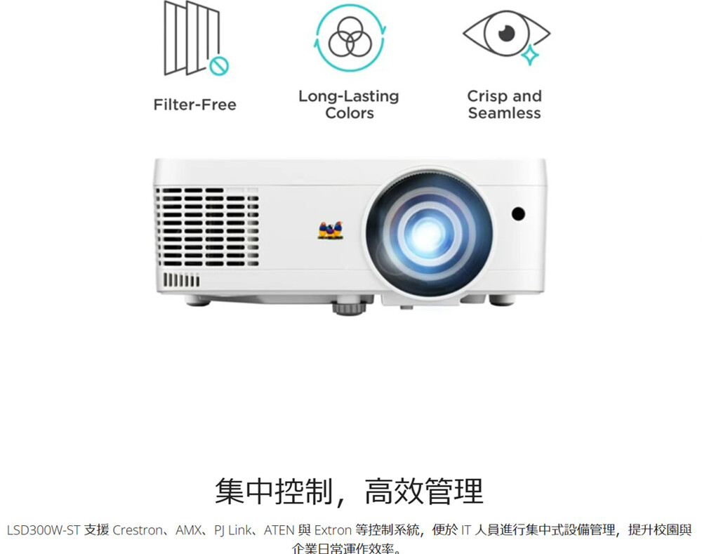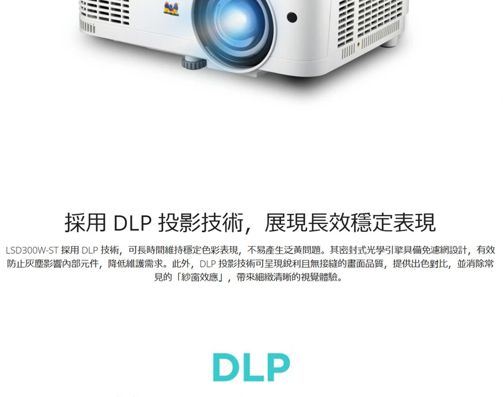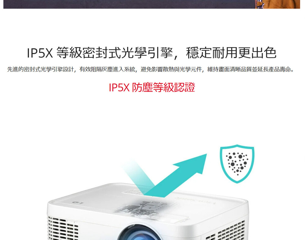 ▲通過 IP5X 認證的密封式 DLP 光學引擎,防潮防塵,免濾網設計確保色彩長期穩定