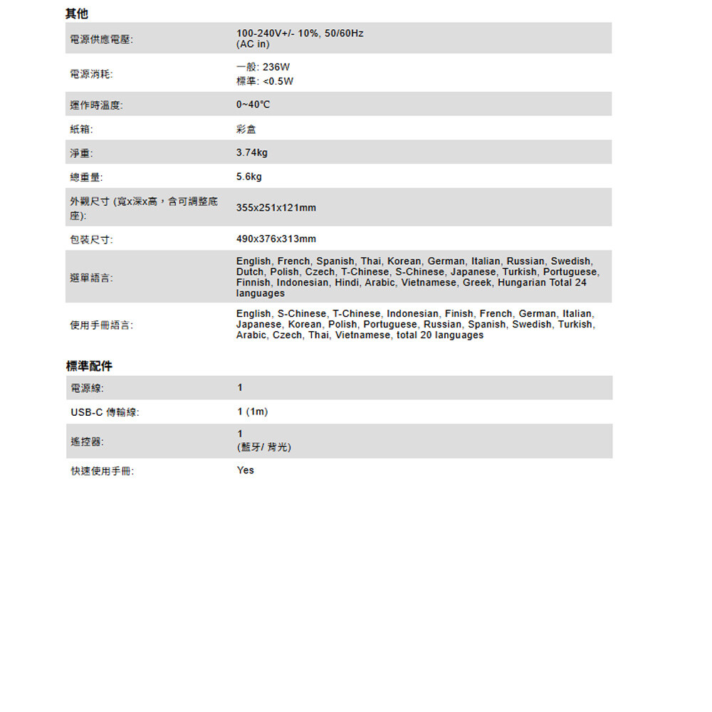 -外觀尺寸 (寬x深x高,含可調整底座): 355x251x121mm