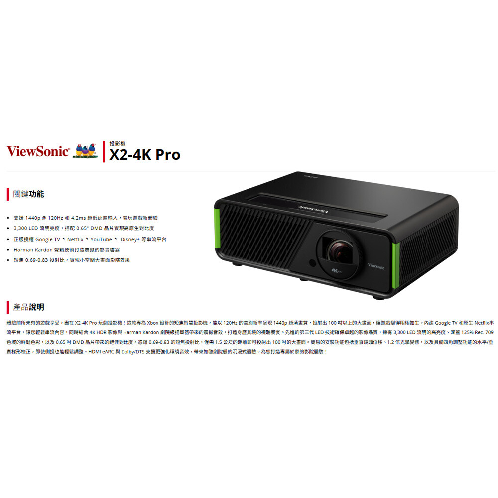 -3,300 LED 流明亮度,搭配 0.65" DMD 晶片實現高原生對比度