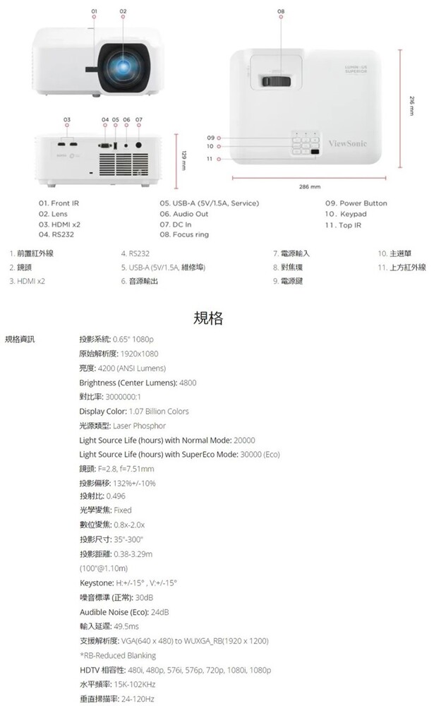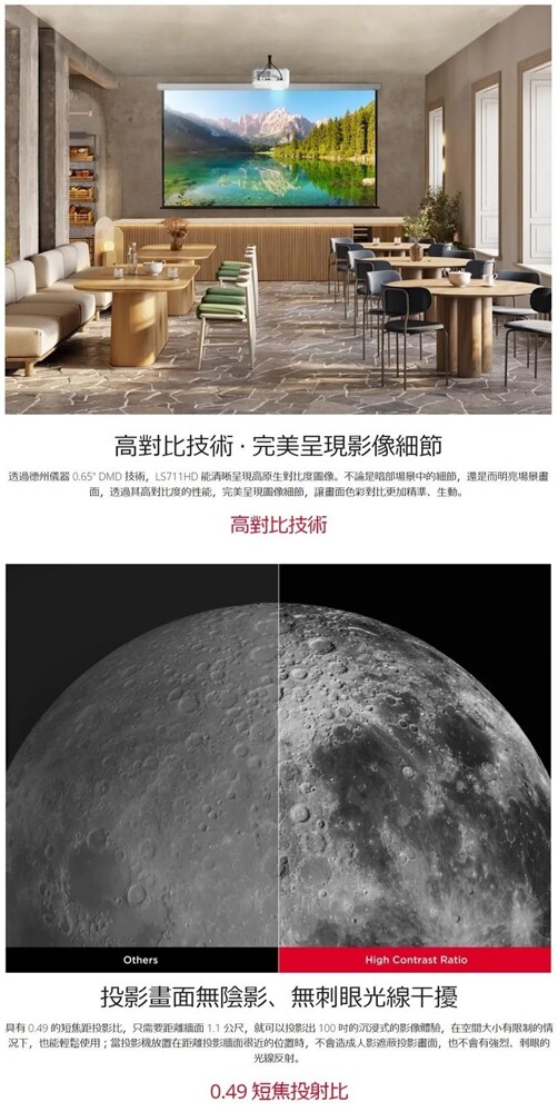 ▲0.49 短焦距投影比,體驗無邊際的沉浸視覺