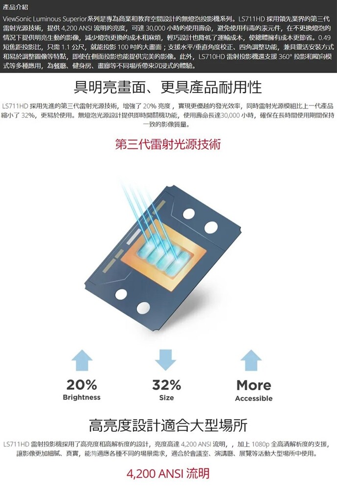 ▲第三代雷射光源技術,長達 30,000 小時的使用壽命