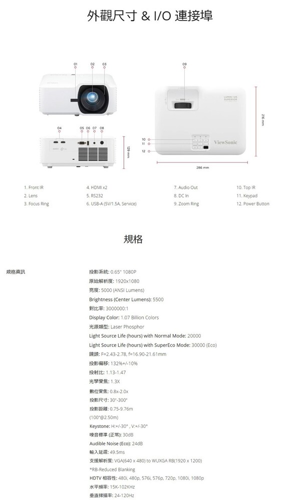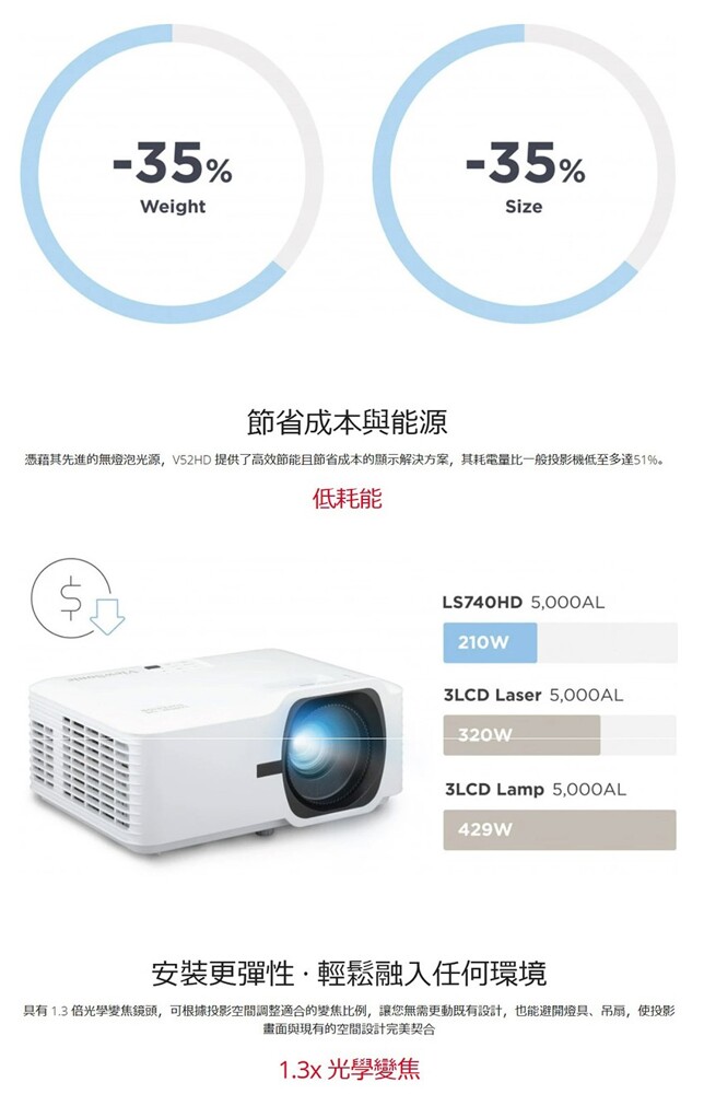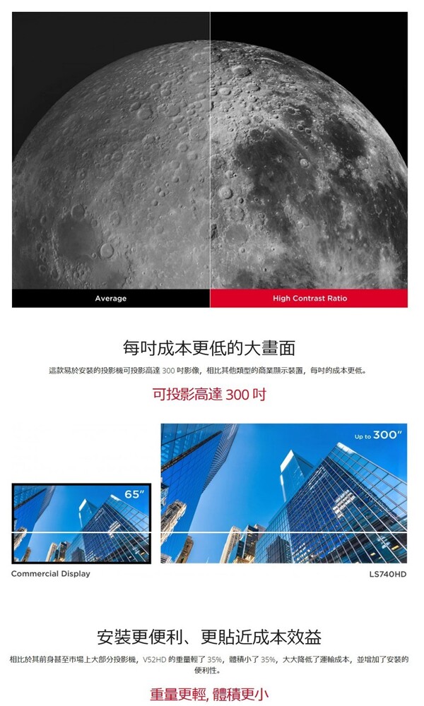 ▲可投影高達 300 吋的超大畫面,每吋畫面成本更低