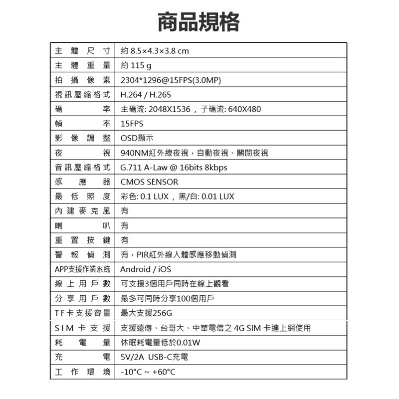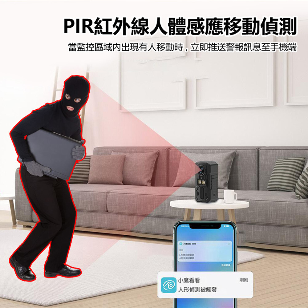 ★ PIR人體感應移動偵測,當監控區內出現有人移動時,會推送警報訊息至手機端