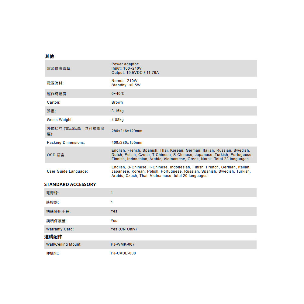 -外觀尺寸 (寬x深x高,含可調整底座): 286x216x129mm