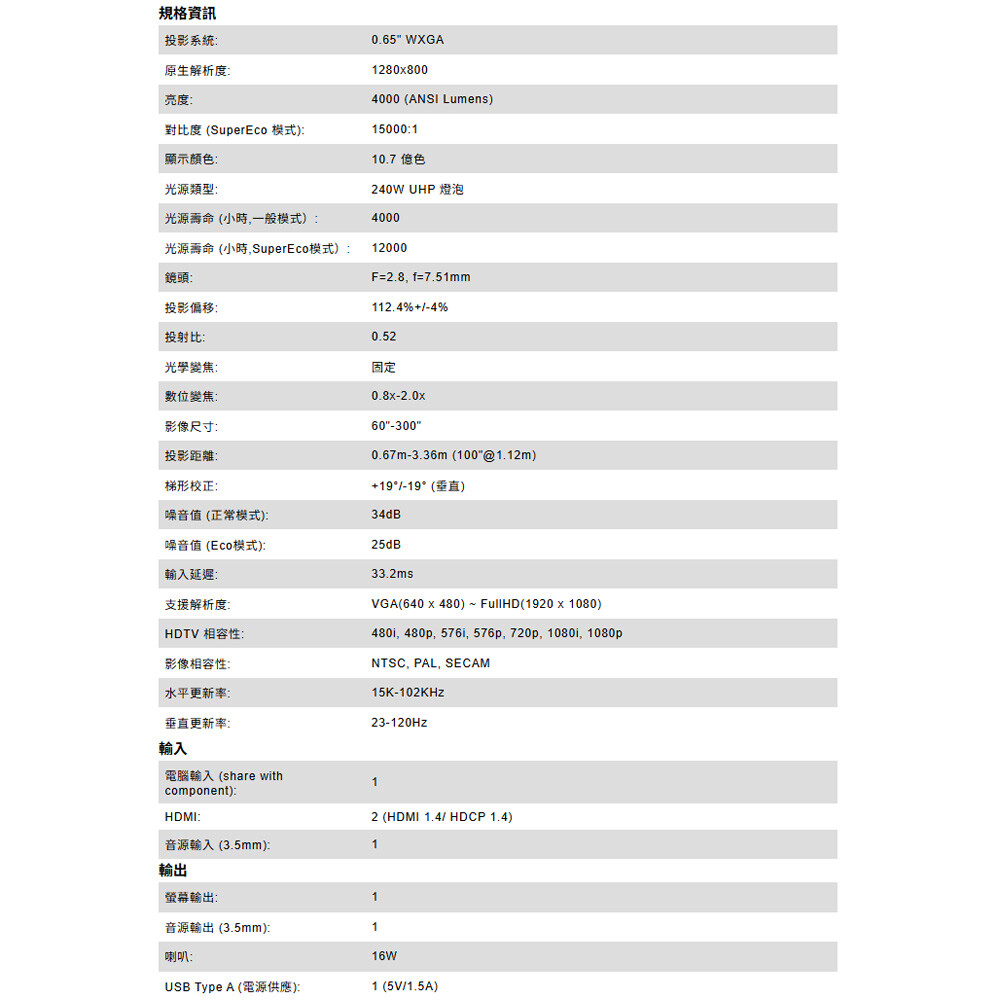 -0.52 的短焦比設計縮短投影距離,占用更少的空間