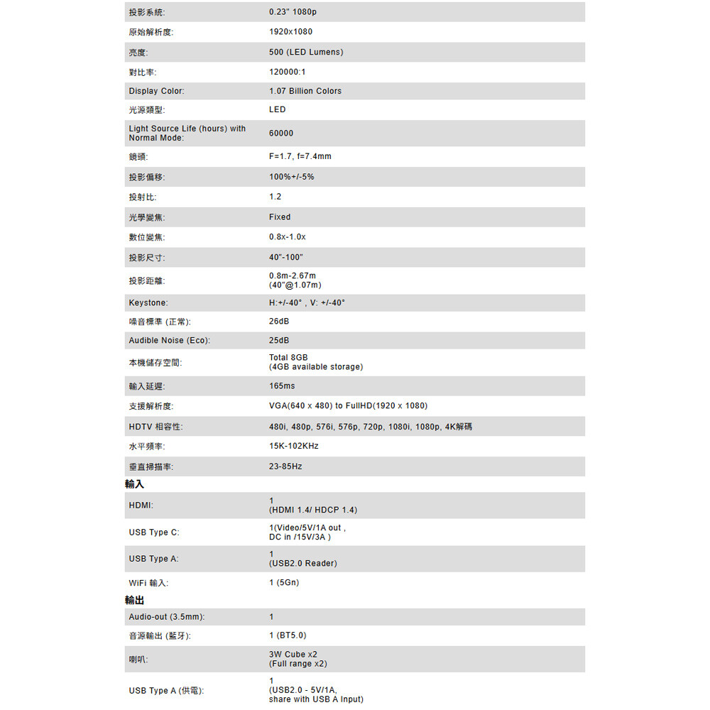 -自動 H/V 梯形校正與瞬時自動對焦