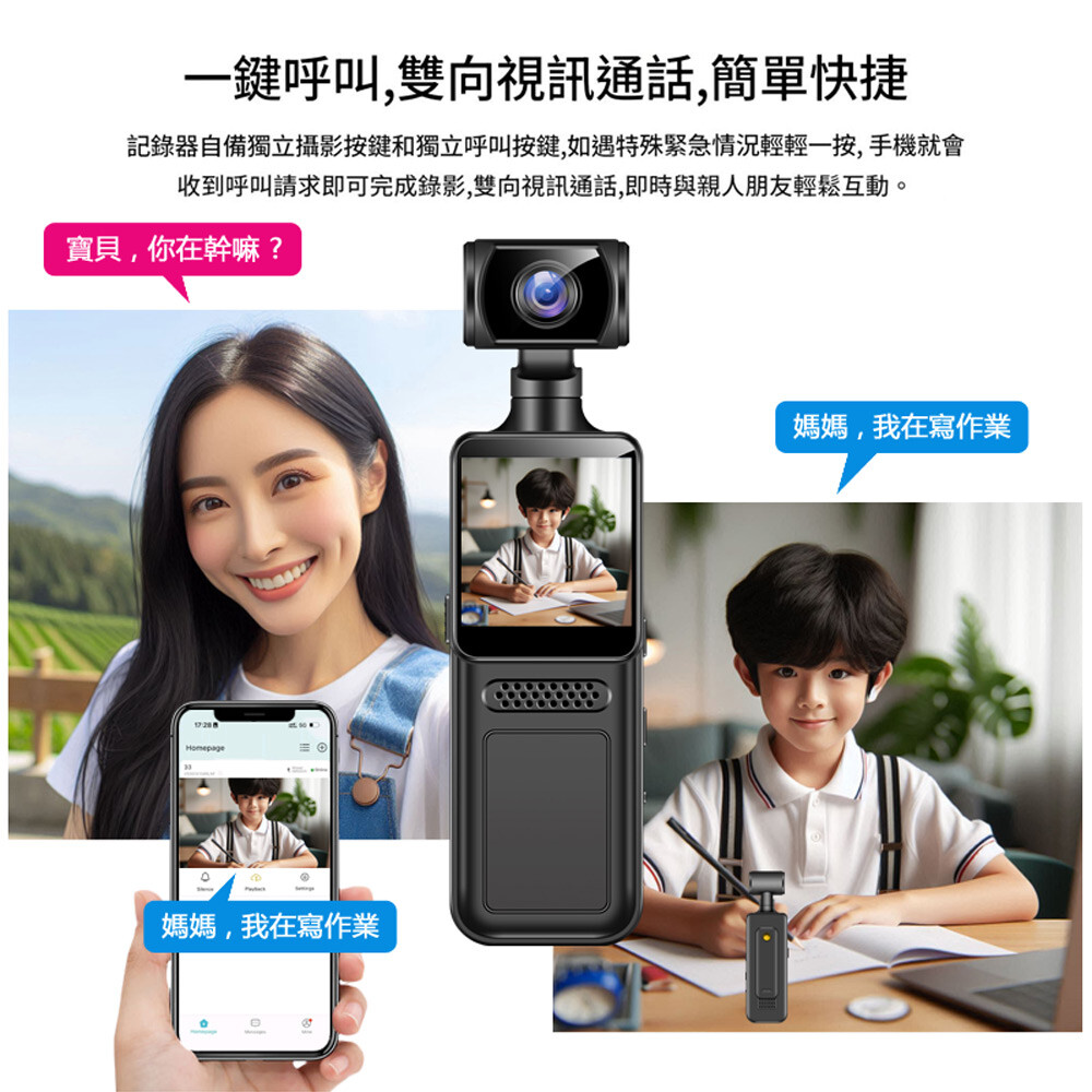 ★ 具一鍵呼叫鍵,如遇緊急情況輕按,手機會收到呼叫請求即可完成錄影
