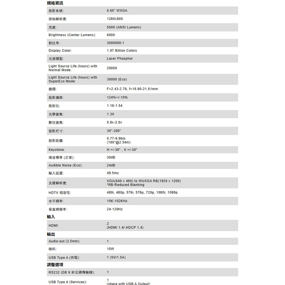 -第三代雷射光源技術,實現最長 30,000 小時的光源壽命