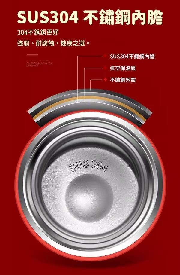 材質:不鏽鋼外殼、304不鏽鋼內膽、PP、矽膠