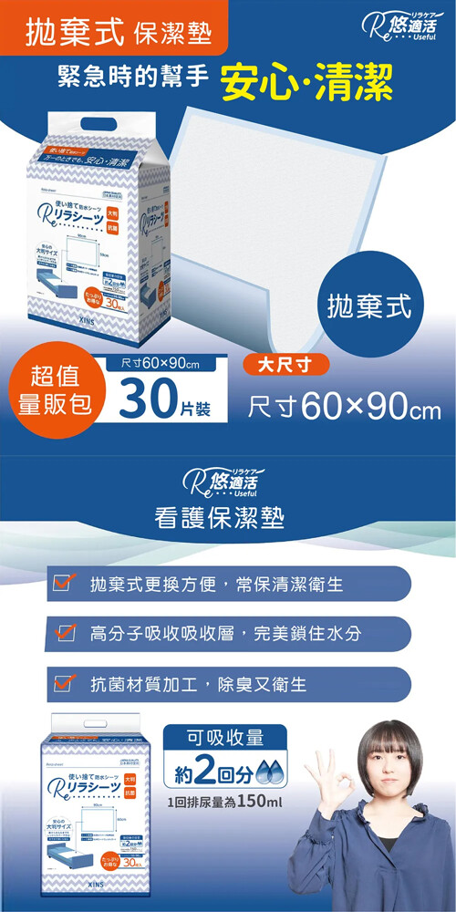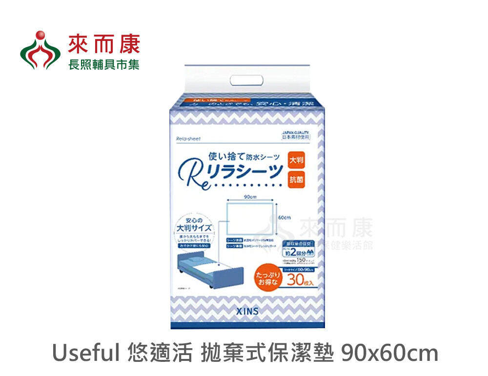 來而康 Useful 悠適活 拋棄式保潔墊 90x60cm 30片/包 4包/箱販售 拋棄式 護理
