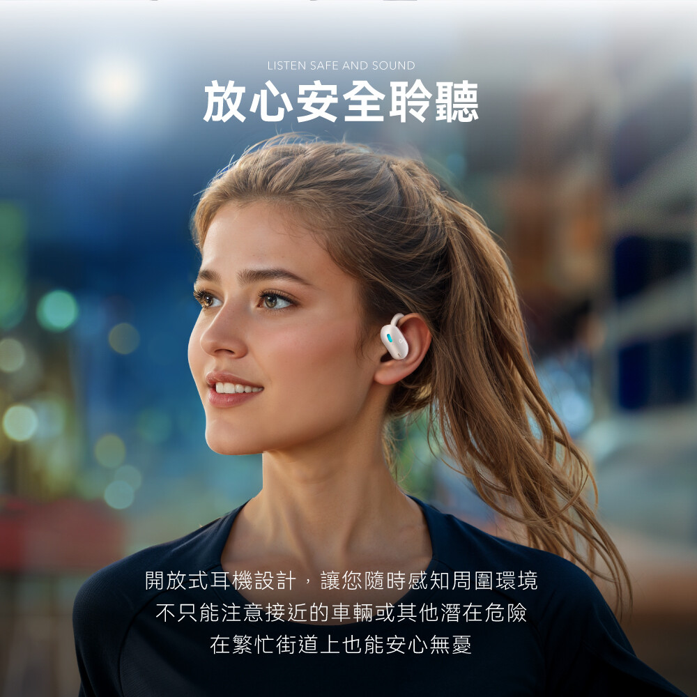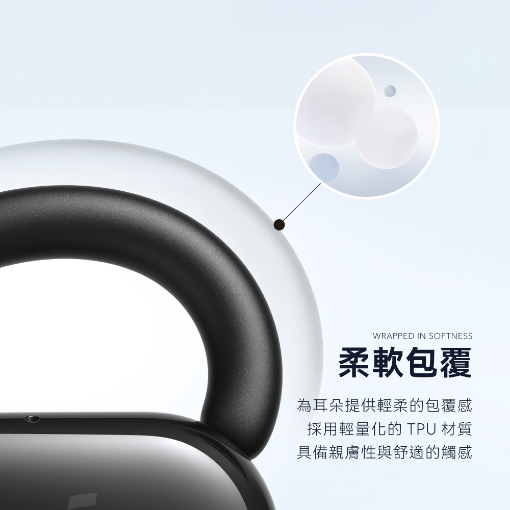 🔹開放舒適 自由享受|耳機不入耳與輕量化設計,搭配親膚 TPU 材質,全天候無壓力聆聽