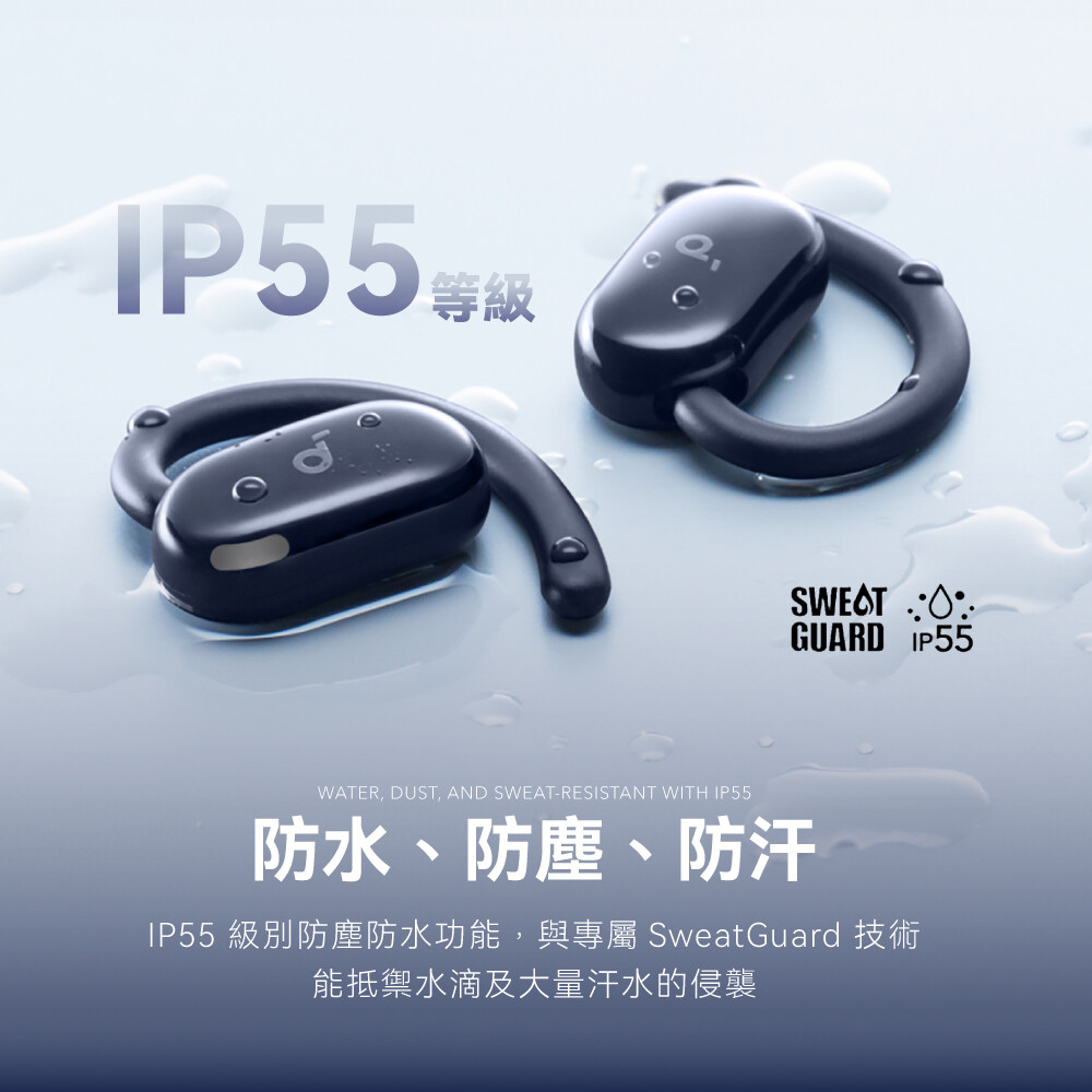🔹國際認證 防水防汗|IP55 日常防水、防塵,搭配獨家 SweatGuard™ 防汗技術,全天候放心享樂