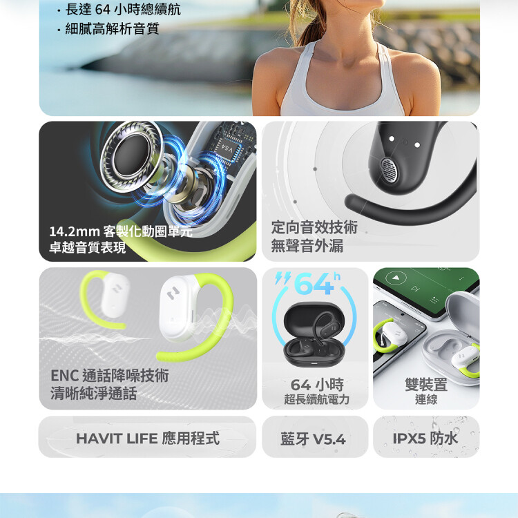 型號:【Havit 海威特】OWS915 高續航戶外開放式藍牙耳機