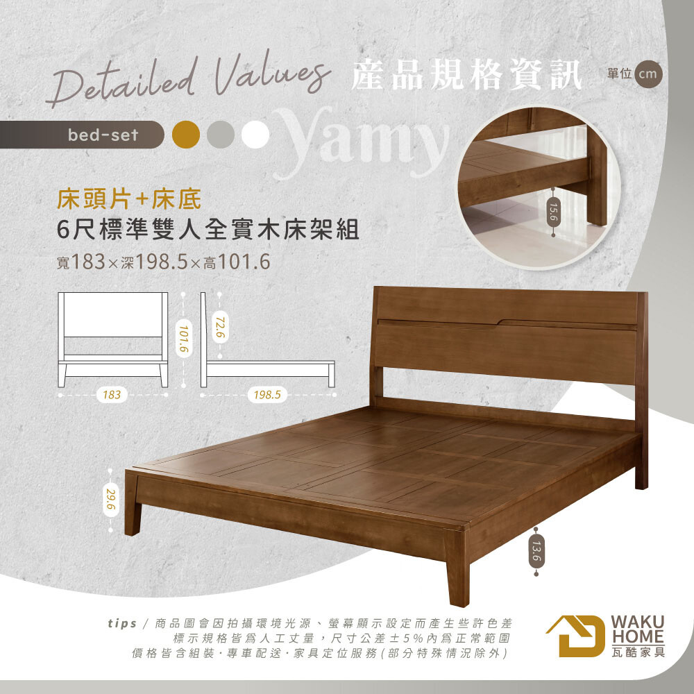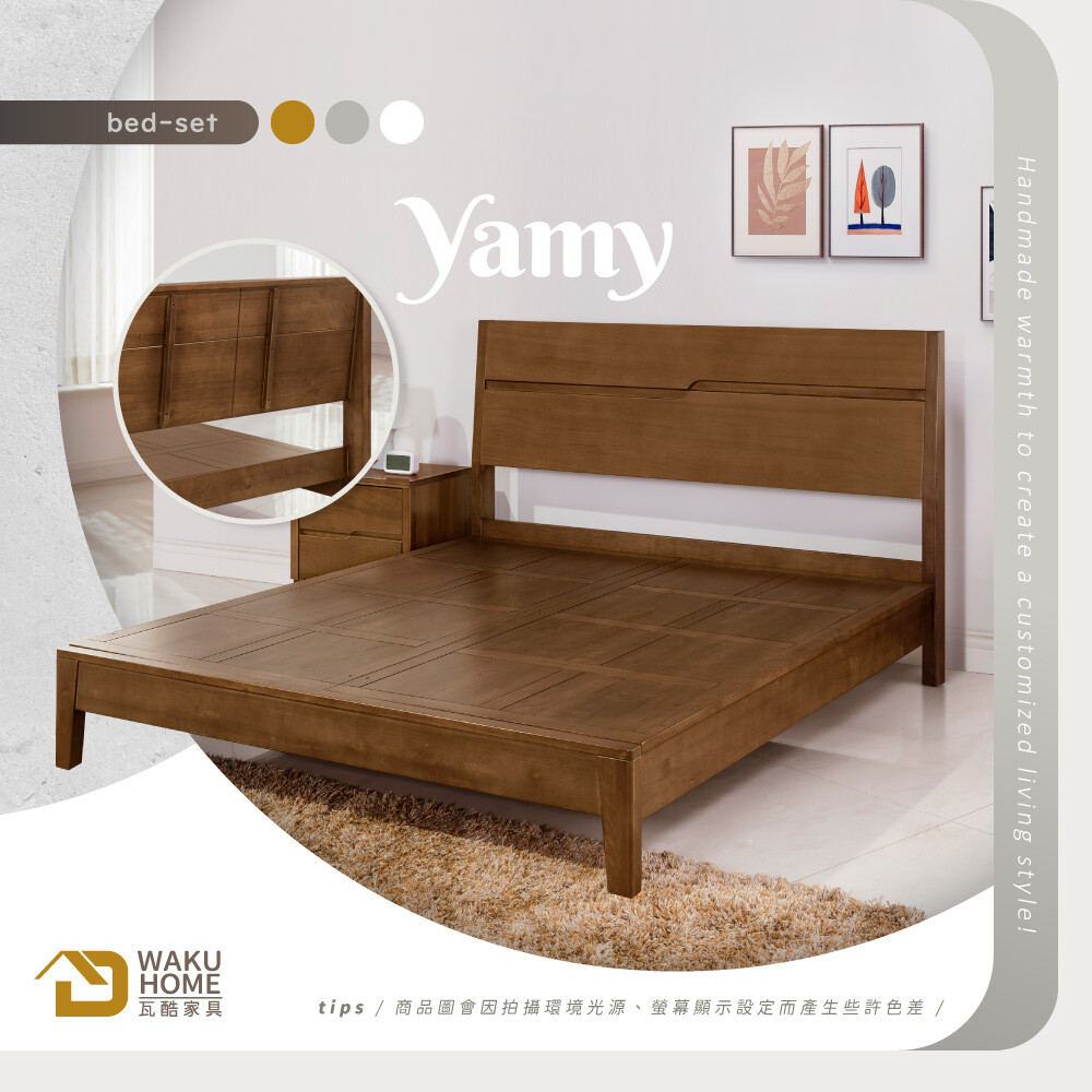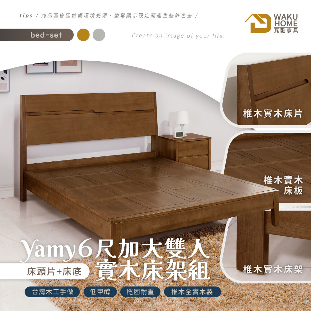 Yamy6尺加大雙人淺胡桃全實木片床式床組A010-531
