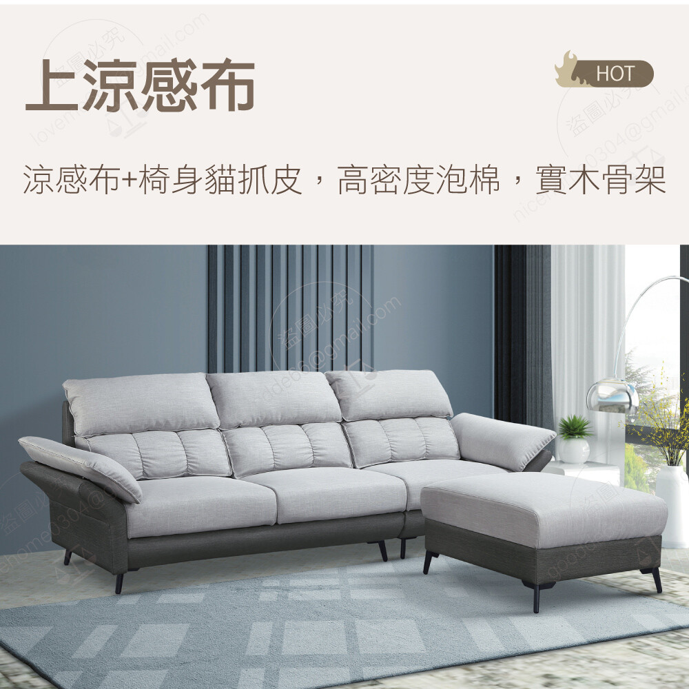 上涼感布+椅身貓抓皮 高密度泡棉 實木骨架