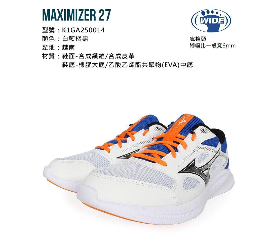 MIZUNO MAXIMIZER 27 男慢跑鞋-3E-寬楦 反光 美津濃 白藍橘黑