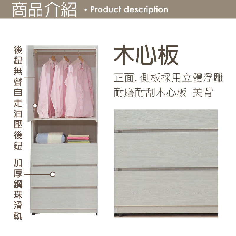 全木心板含抽牆 五金加厚鋼珠滑軌