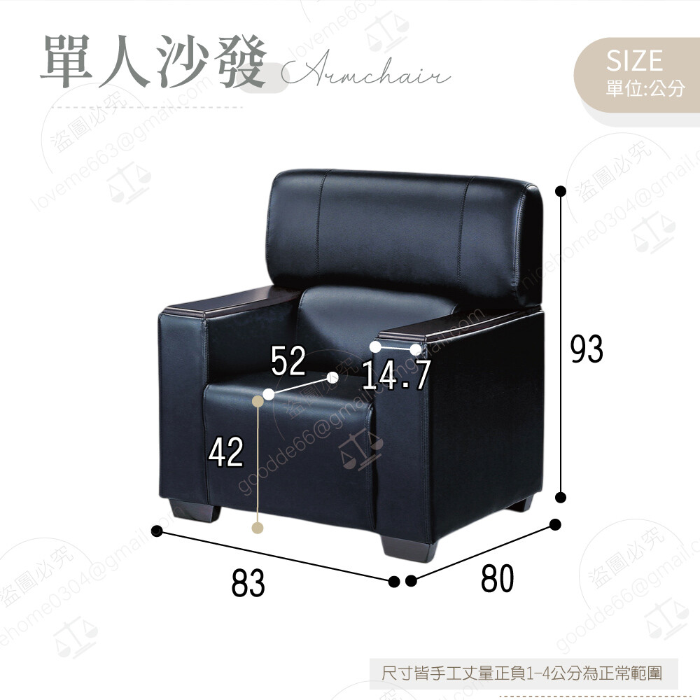 單人沙發:寬83×深80×高93公分