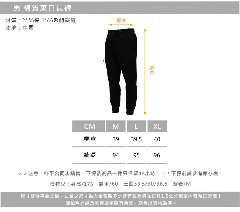 FIRESTAR 男棉質束口長褲-慢跑 路跑 運動 訓練 黑