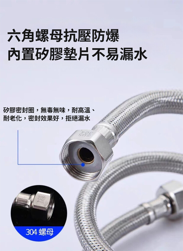 不銹鋼編織管4分雙頭304鋼絲高壓軟管龍頭馬桶冷熱專用水管-1米