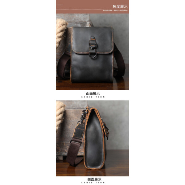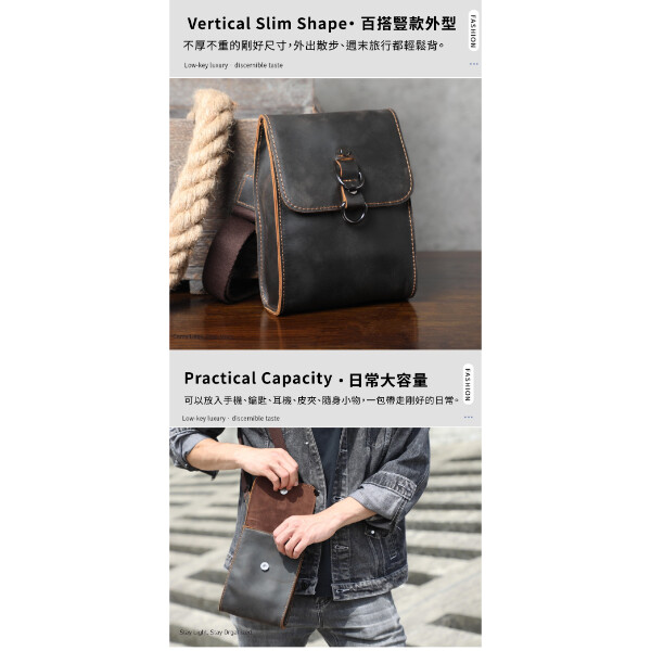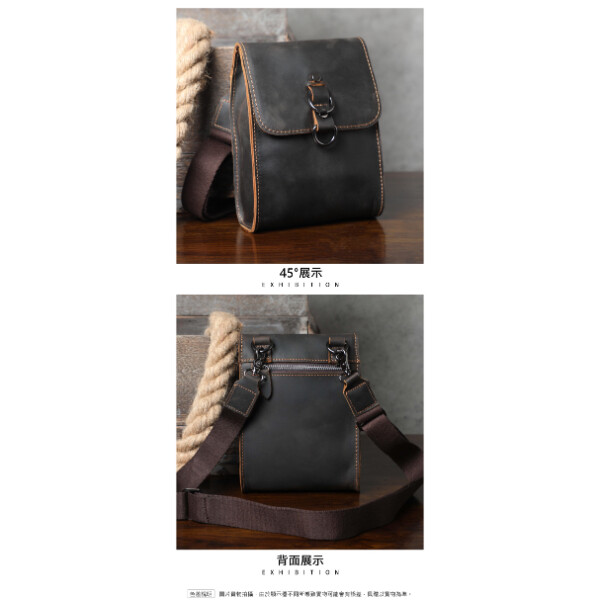 【喜番屋】真皮頭層瘋馬牛皮男士豎款肩背包小包斜背包男包【LB1200】