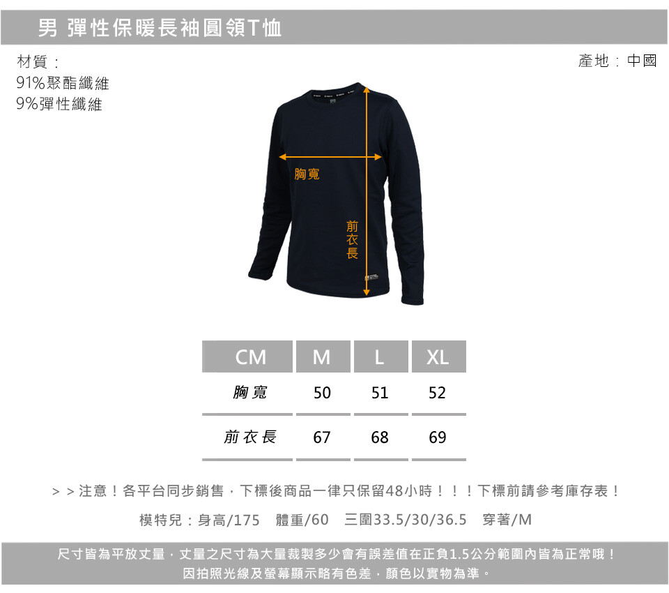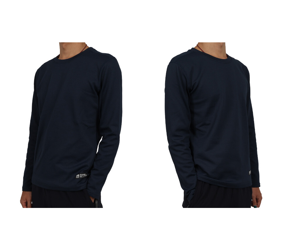 FIRESTAR 男彈性保暖長袖圓領T恤-長T 休閒 慢跑 路跑 丈青