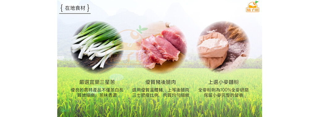 麵粉、水、青蔥、玉米、雞肉、豬肉(台灣)、大豆蛋白、樹薯澱粉、棕櫚油、粘稠劑(羥丙基磷酸二澱粉)、香油(大豆油、芝麻油)、食鹽、蔗糖、薑、調味劑(L-麩酸鈉)、醬油、蒜抽出物(麥芽糊精、大豆油、蒜頭抽出物、二氧化矽)、明膠、葡萄糖、品質改良劑[焦磷酸鈉(無水)、多磷酸鈉]、白胡椒粉、泡打粉[酸性焦磷酸鈉、碳酸氫鈉、玉米澱粉(非基因改造)、磷酸二氫鈣]、花椒粉