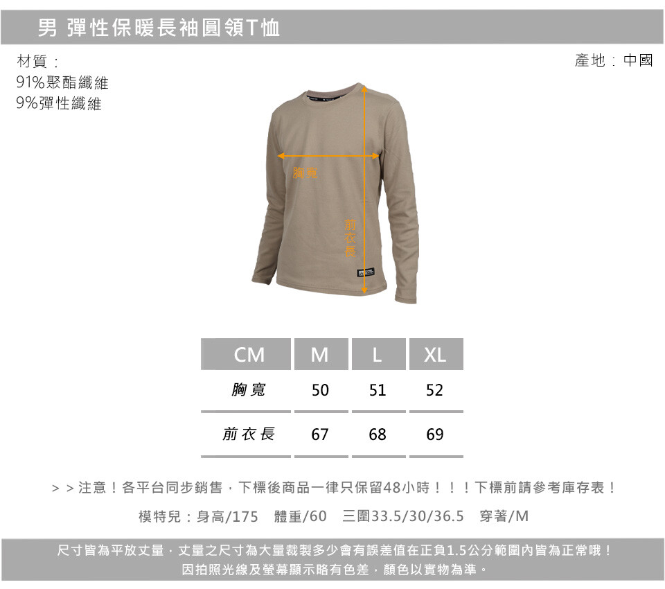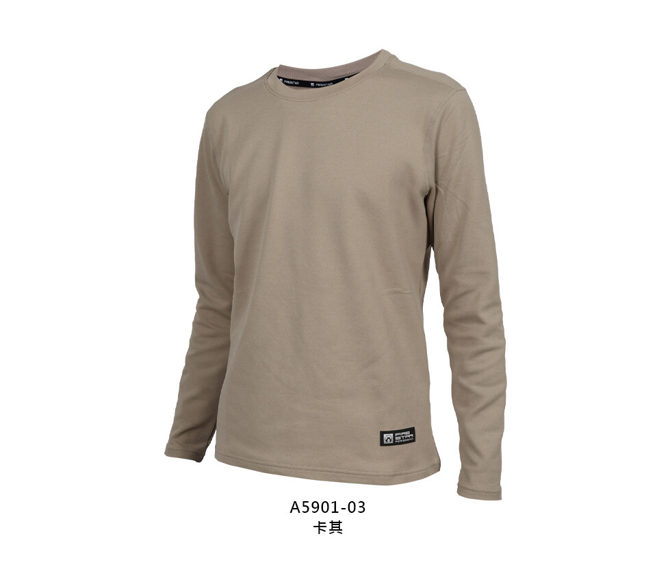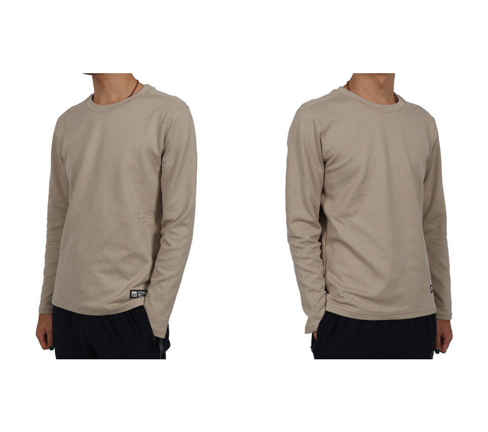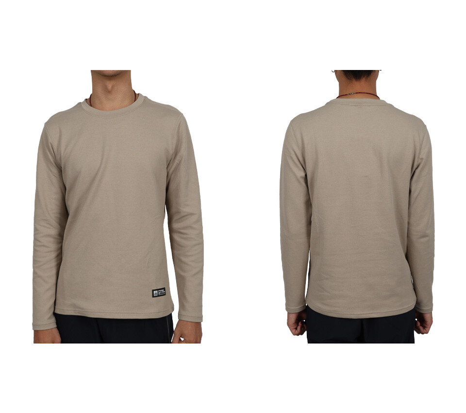 FIRESTAR 男彈性保暖長袖圓領T恤-長T 休閒 慢跑 路跑 卡其