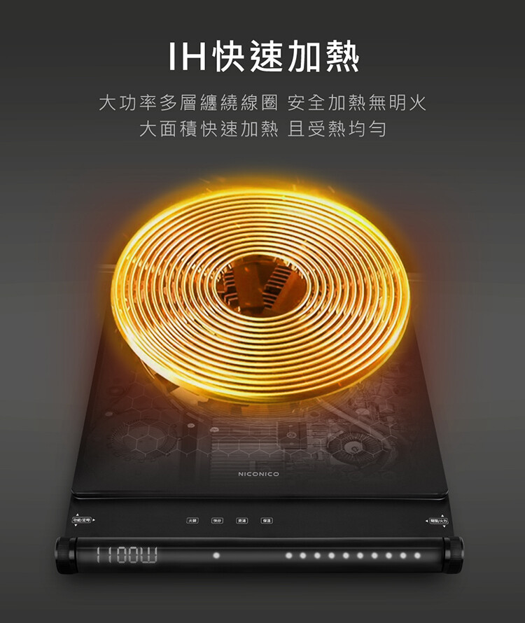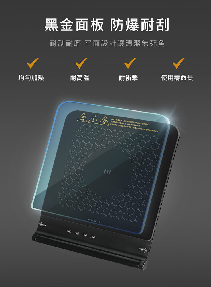 原廠保固〔家電王〕NICONICO 超薄美型IH平板電磁爐 NI-CG2319,超薄機身 加熱快 定時預約,電陶爐微晶爐