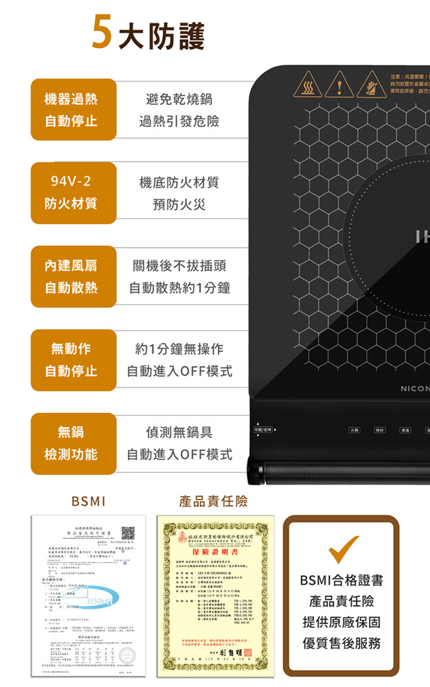 無鍋或無動作 偵測設計,1分鐘自動關機