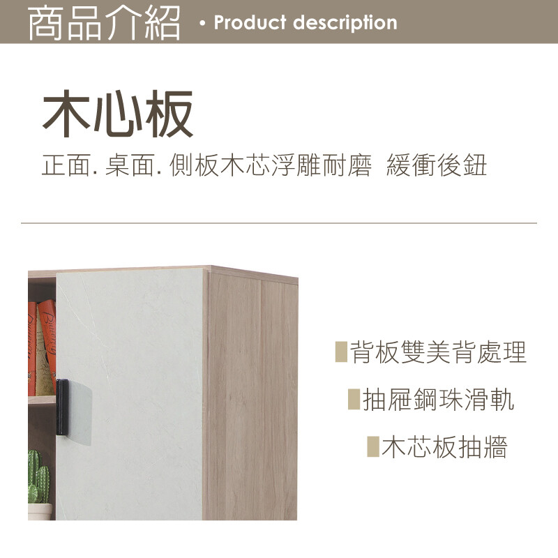 正面. 桌面.側板木芯浮雕 耐磨