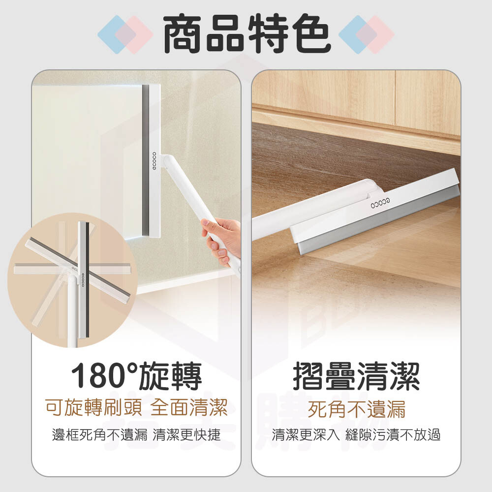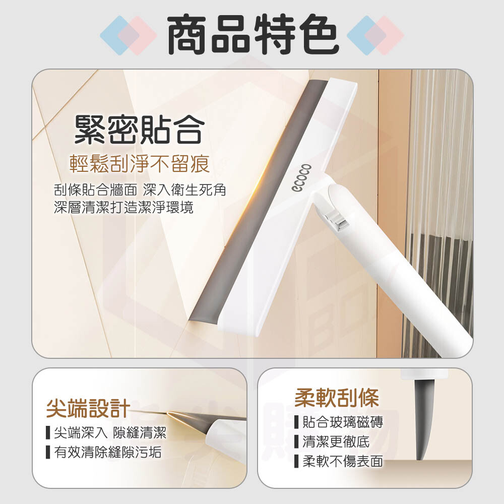 獨特ㄟ型外觀更符合施力角度,貼著牆面使用更省力,清潔更順手。