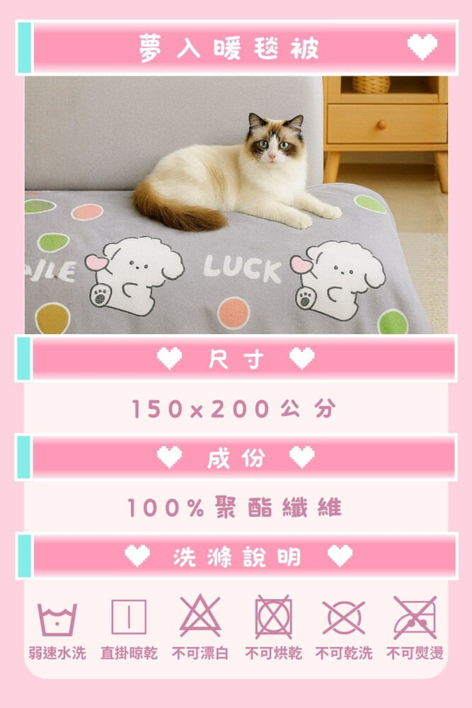-洗滌建議:可水洗、弱速機洗、不可烘乾、不可漂白、不可熨燙、不可乾洗