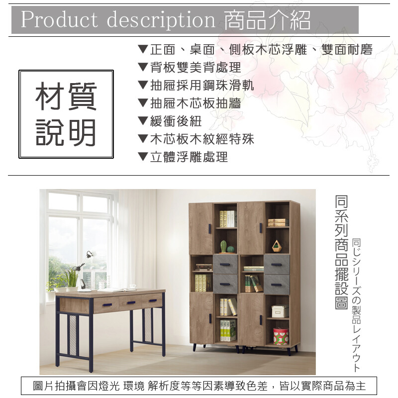 正面、桌面、側板木芯浮雕、雙面耐磨