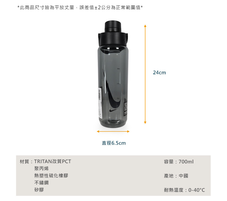 NIKE TR RECHARGE 大口徑水壺24OZ-登山 單車 運動水壺 透明黑