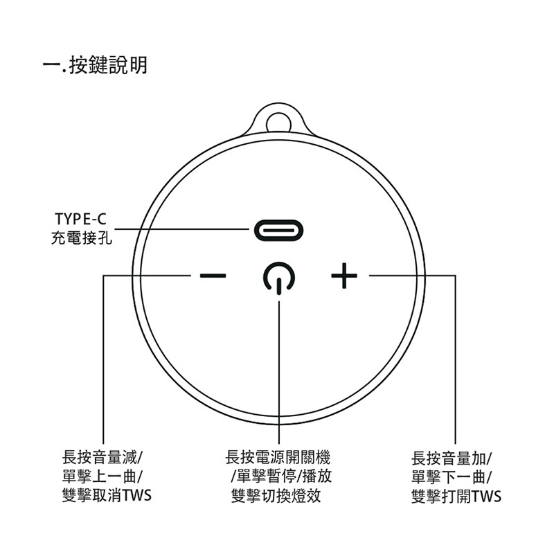 內容物:藍牙音響x1、充電線x1、掛繩x1、說明書x1、保固卡x1