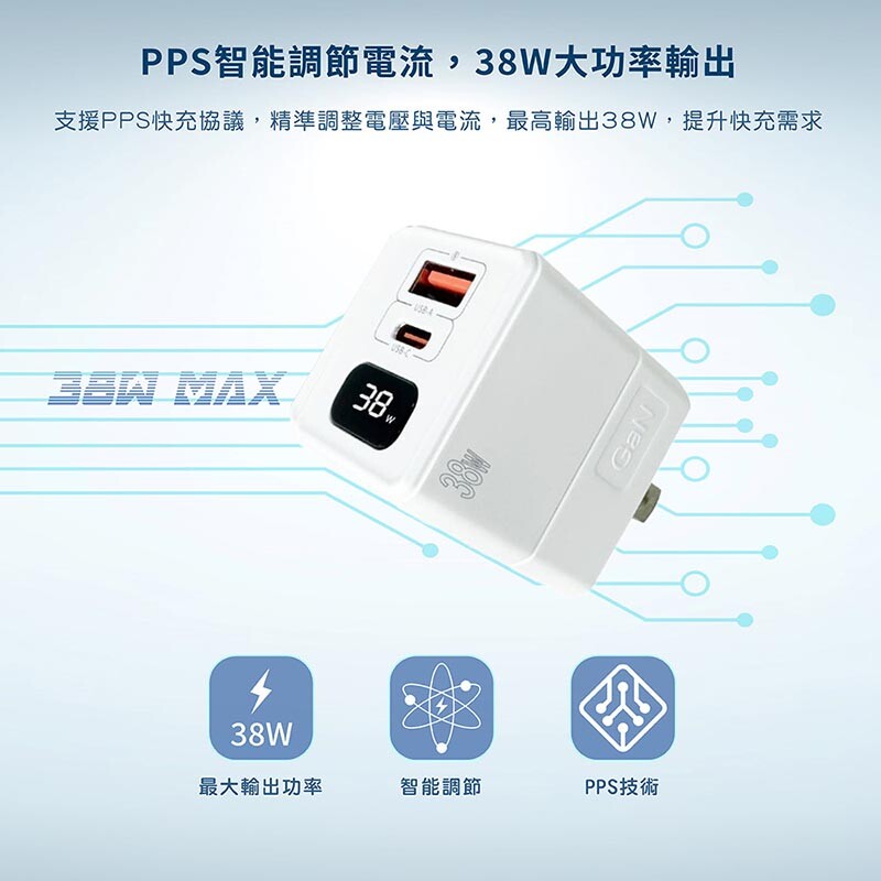 ◎ 38W 氮化鎵GaN 電源供應器, 使用「氮化鎵」科技,體積更小,充電快、發熱量低