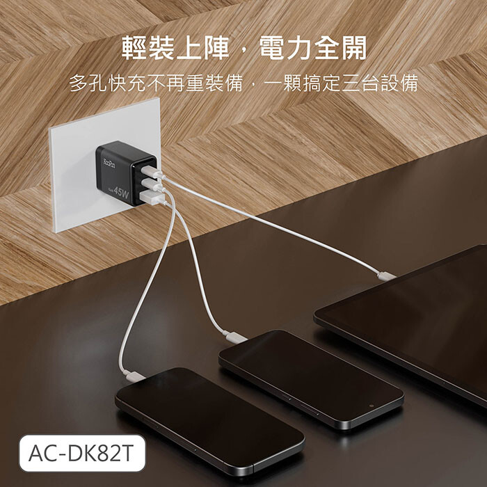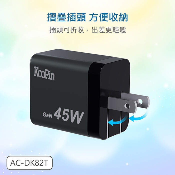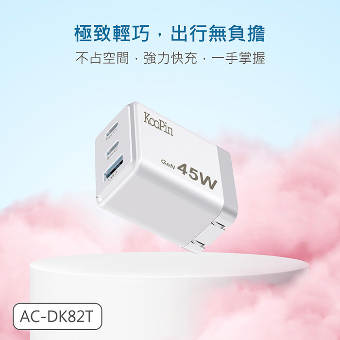 KooPin 台灣製造45W氮化鎵 雙USB-C+USB-A手機急速快充充電器(2C1A)