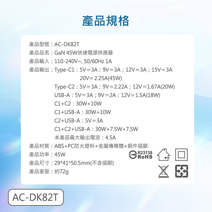 台灣製造、BSMI國家認證,採用氮化鎵GaN 第三代半導體新技術