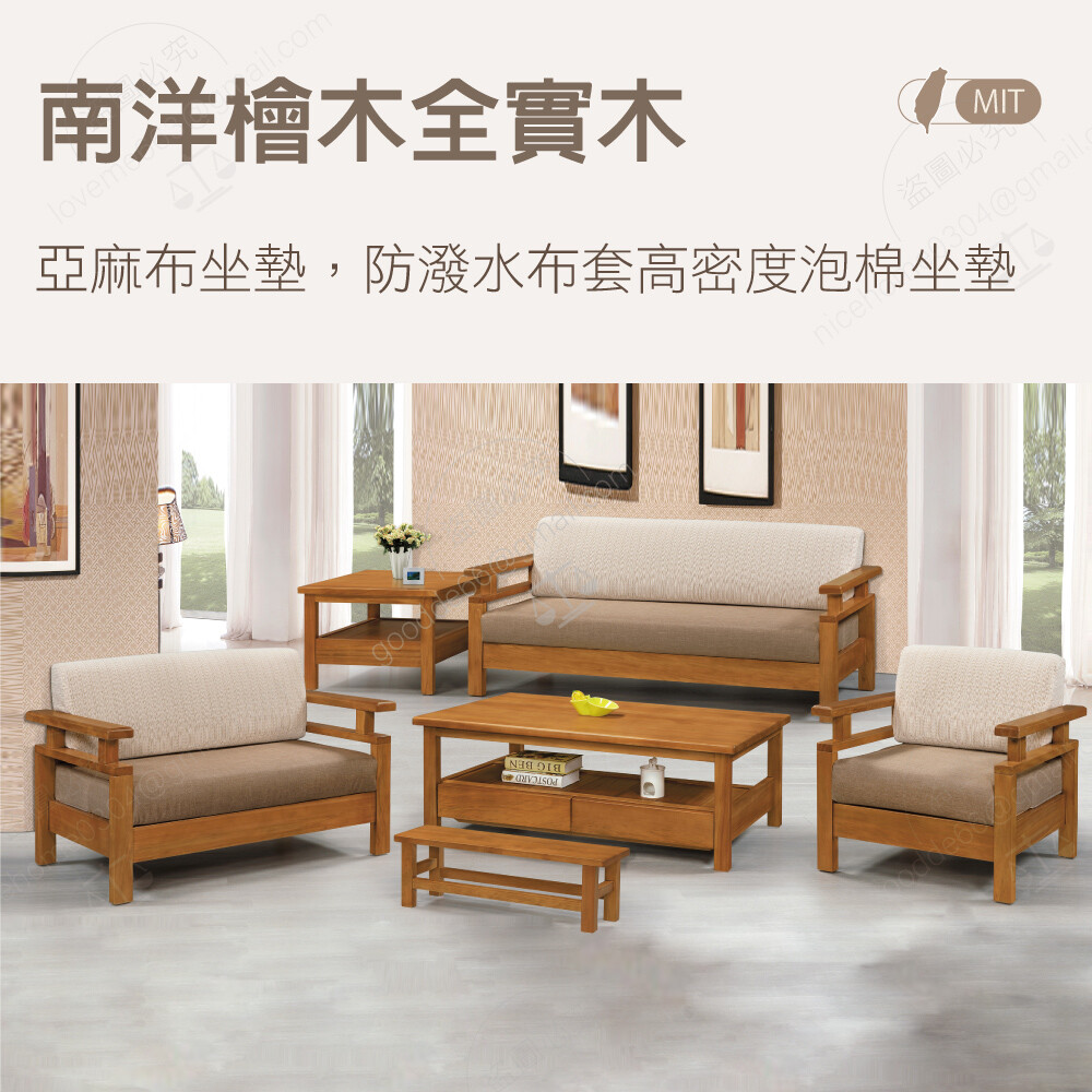 南洋檜木全實木,台灣製造,亞麻布坐墊