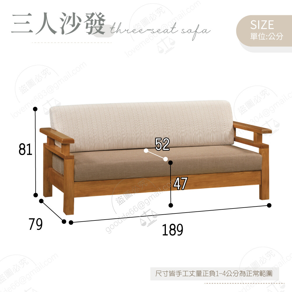 三人板椅:寬189×深79×高81公分