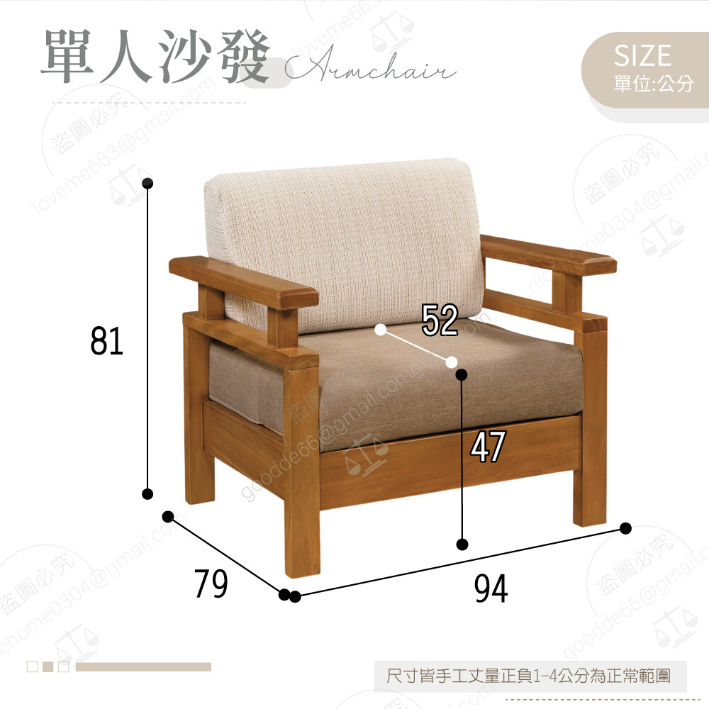 單人板椅:寬94×深79×高81公分