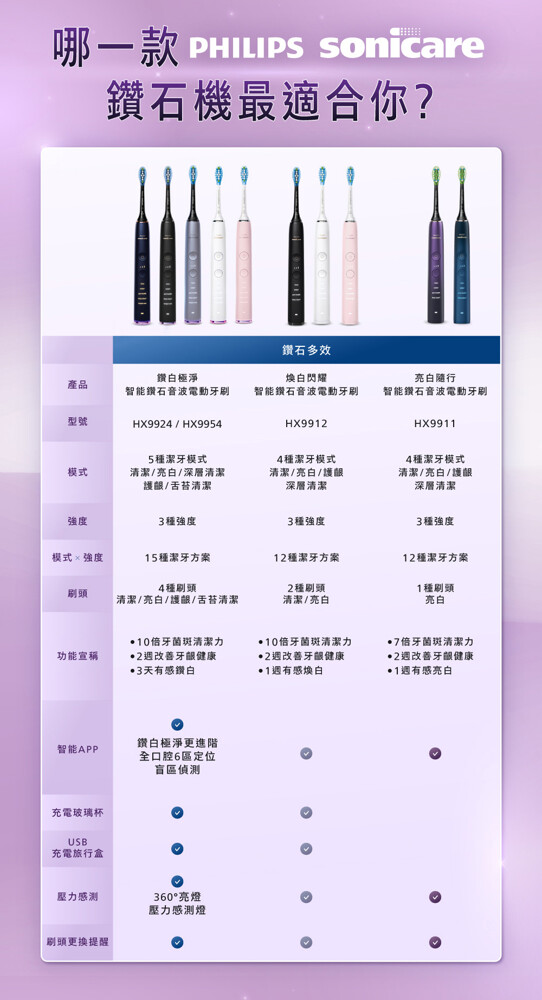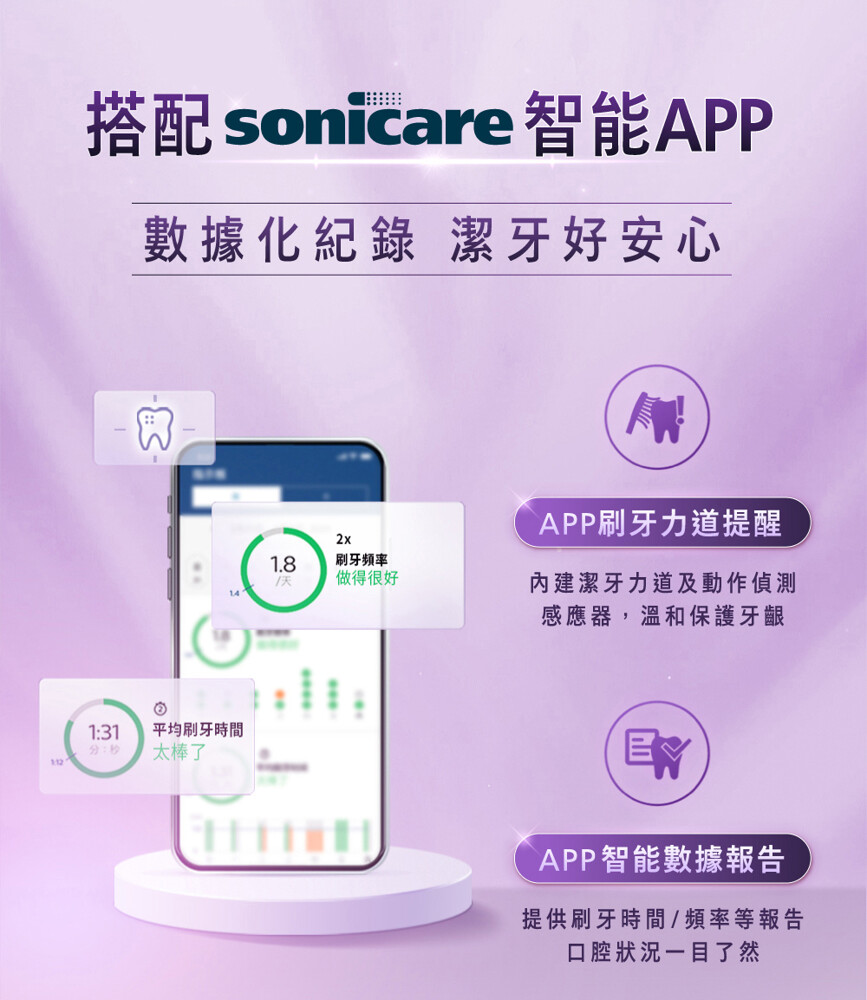 搭配Sonicare智能APP:刷牙力道提醒、提供智能數據報告
