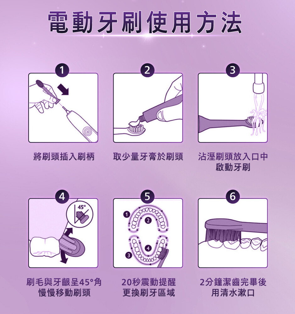 "矽膠包覆刷頭"搭配"高頻率高振幅音波流體潔力"徹底清潔同時給牙齒牙齦多重保護!