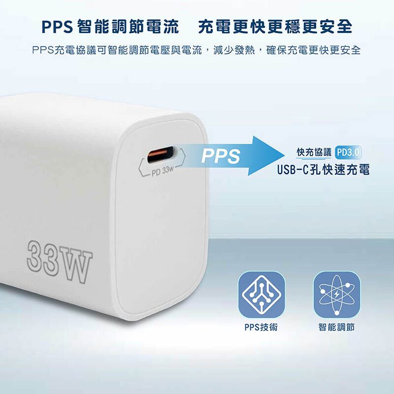 支援iOS裝置33W快充,PD 3.0/PPS快充協議
