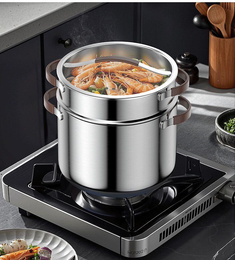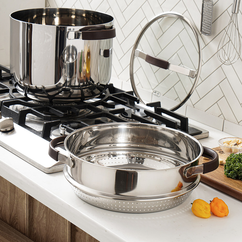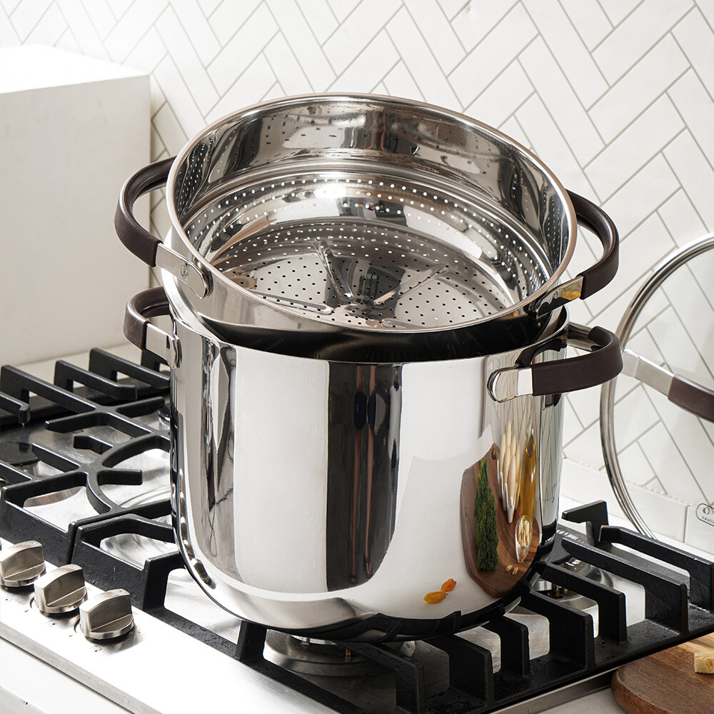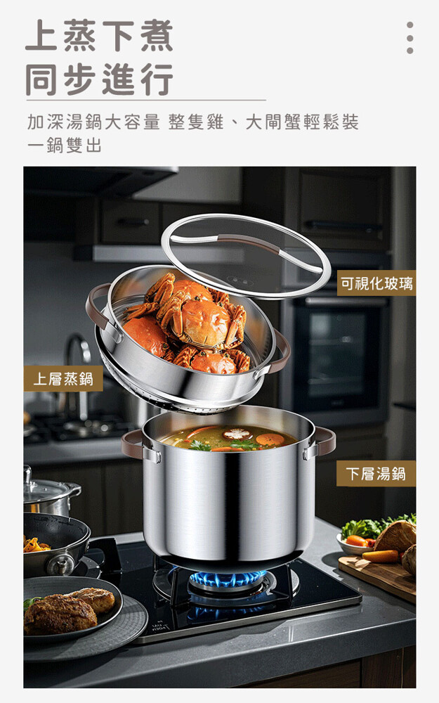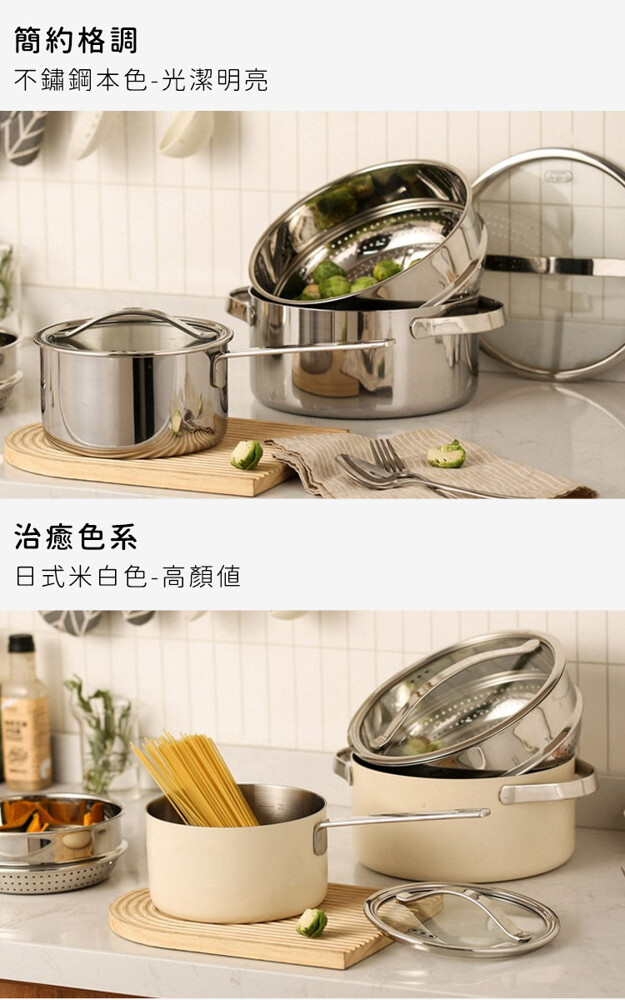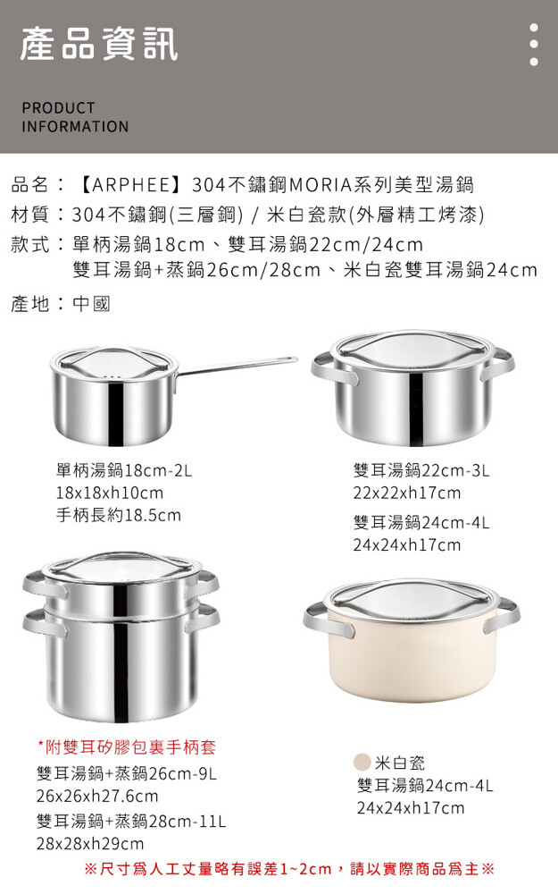 品名:【ARPHEE】304不鏽鋼MORIA系列美型雙耳湯鍋+蒸鍋28cm