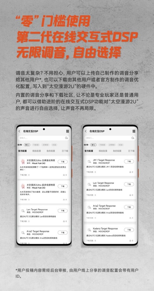 全新MoonDrop APP帶來更多玩法,一鍵AutoEQ輕鬆調音,也可以下載別人的調音