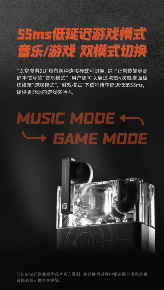 55ms超低延遲,音樂/遊戲 模式雙切換