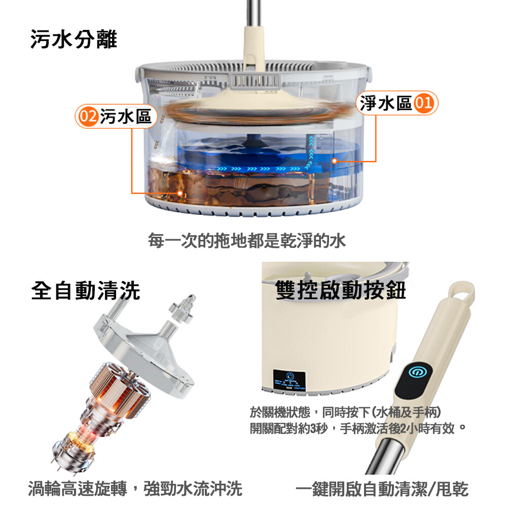 自動清洗甩乾拖把,清洗拖把不再費時費力。