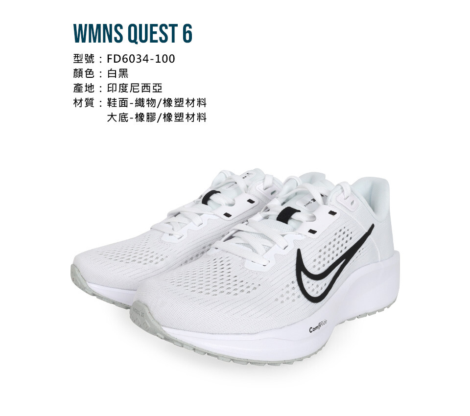 NIKE WMNS QUEST 6 女慢跑鞋-路跑 運動 白黑